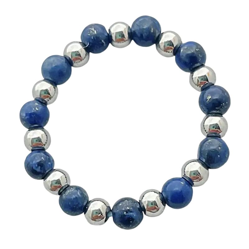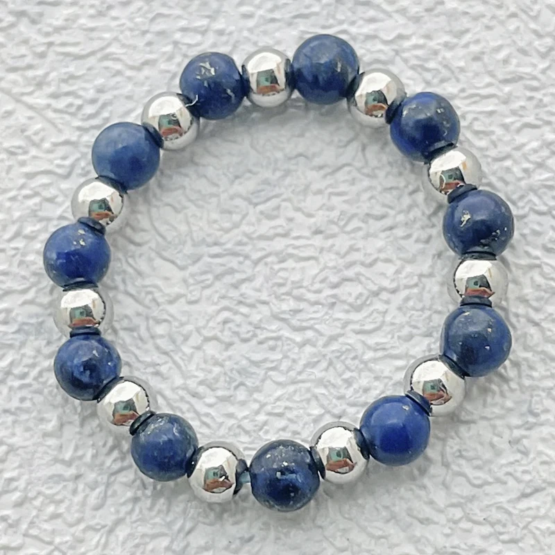 - Matériaux : Pierre (Lapis Lazuli), Acier inoxydable argenté